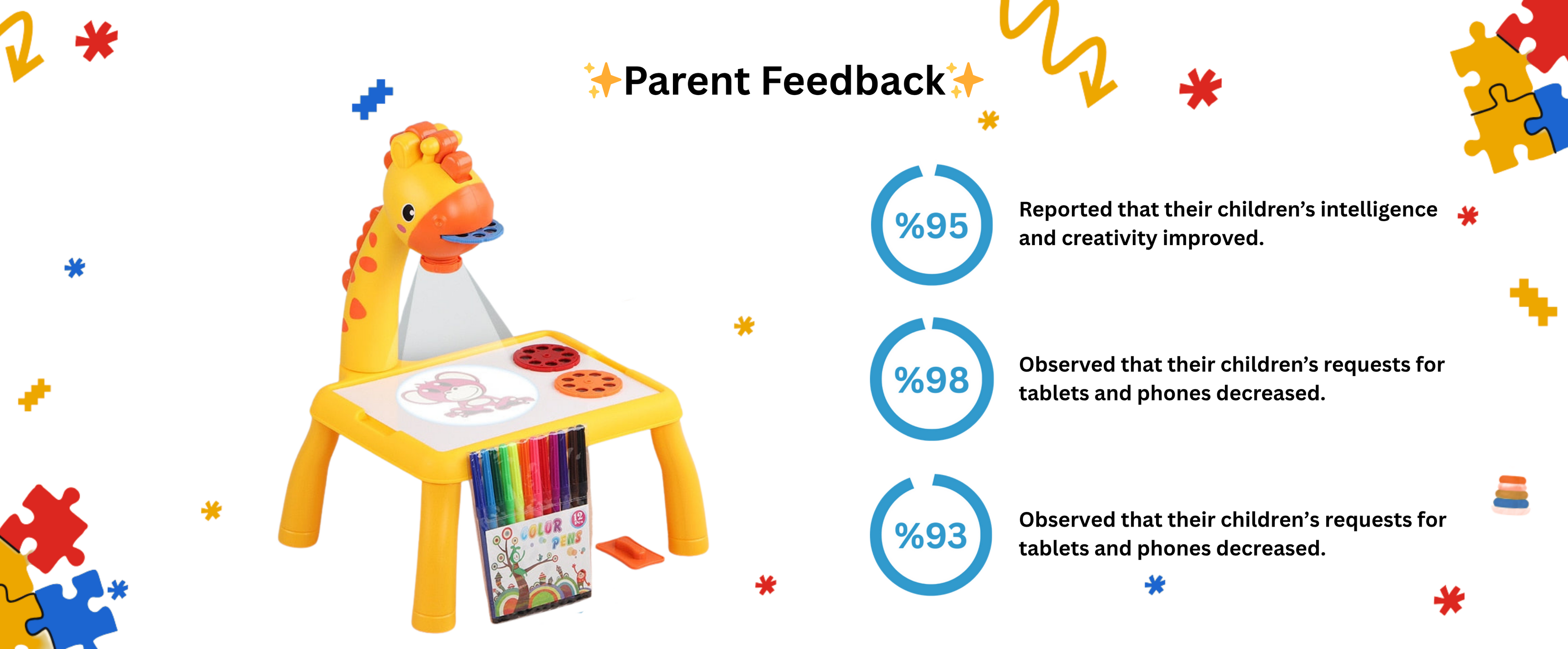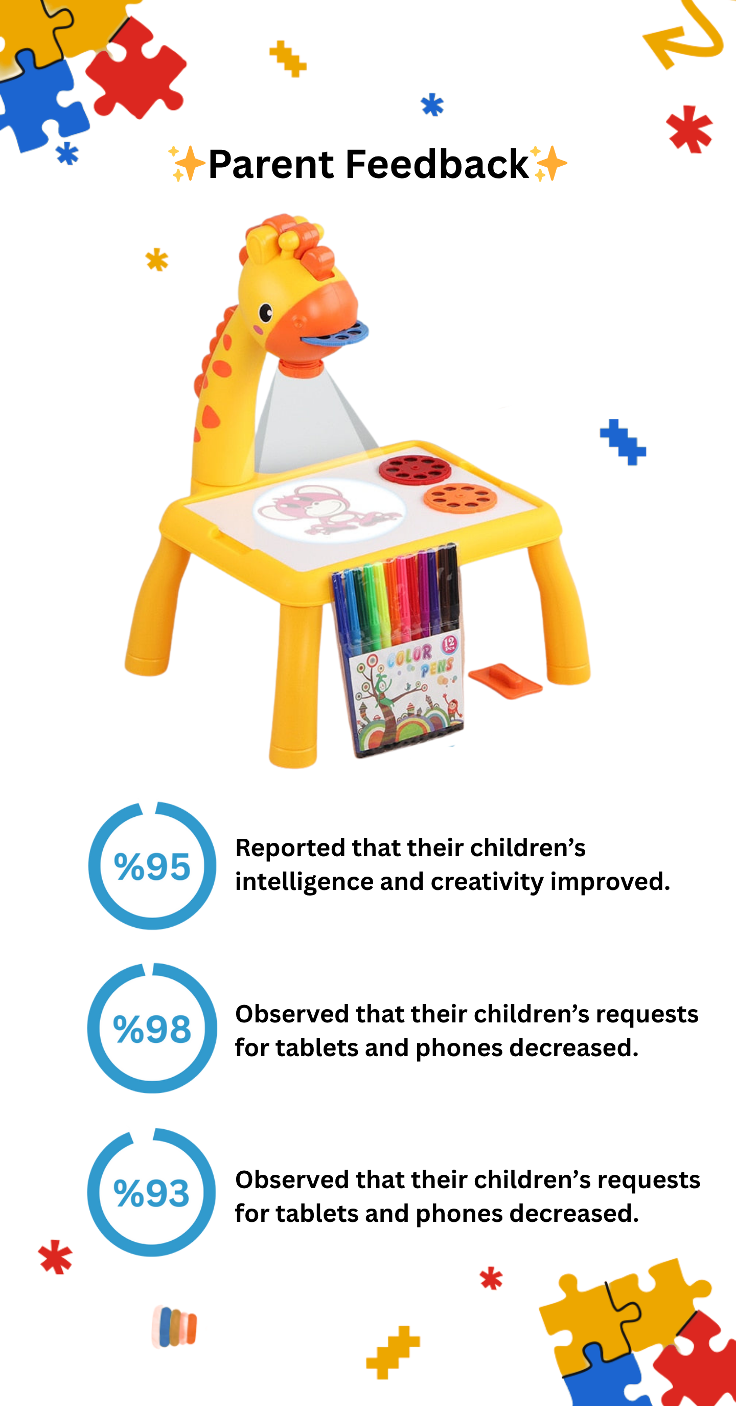 With the Projector Drawing Desk, kids can easily trace shapes using the projector or switch to free mode to bring their own imagination to life on paper.